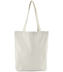 100% organic cotton. Dyed yarn. Striped design. Carry/shoulder straps (67cm long). Cut out label. Capacity 10 litres.